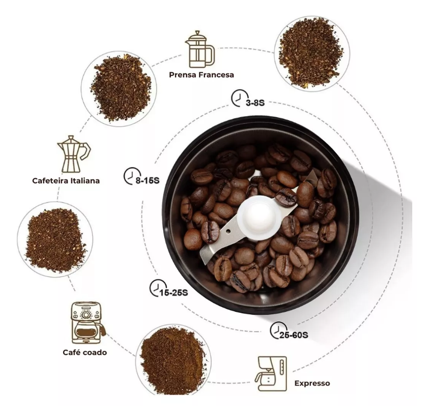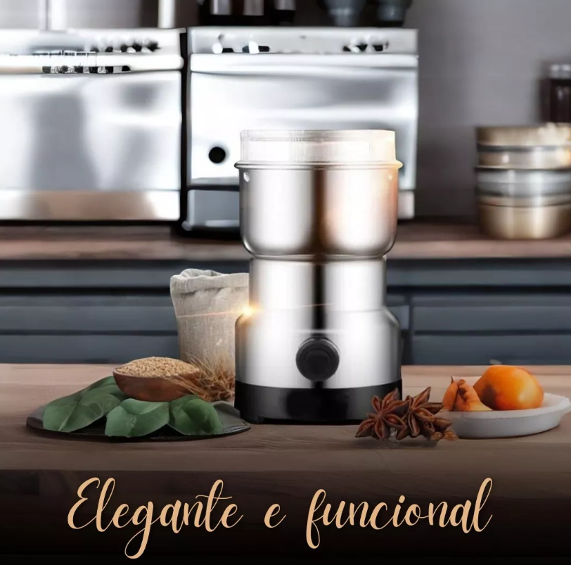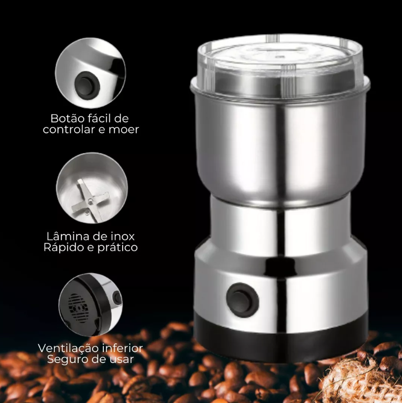 O moedor elétrico que garante um café 100% puro e fresco, moído na hora, diretamente dos grãos selecionados por você. Com ele, você tem o controle total da qualidade do seu café, desde a moagem até a última gota.