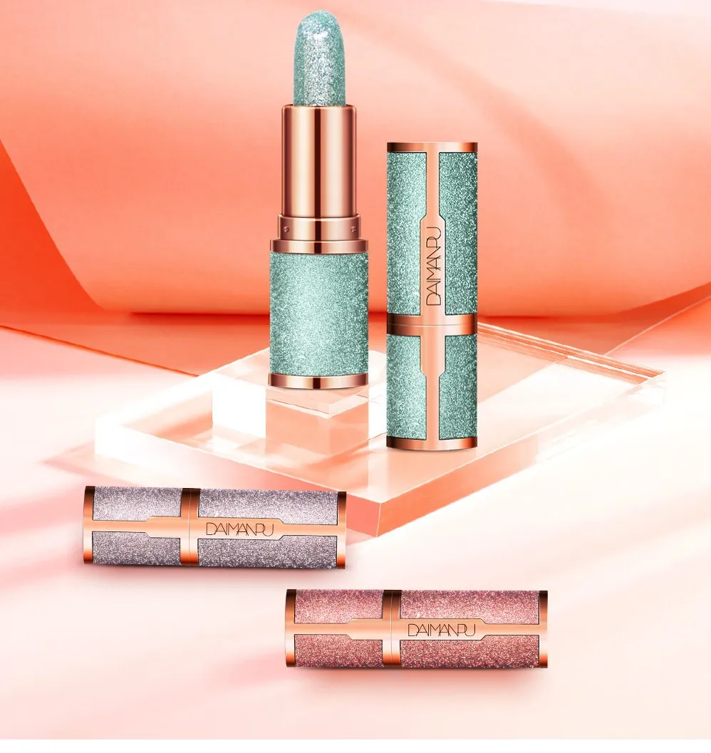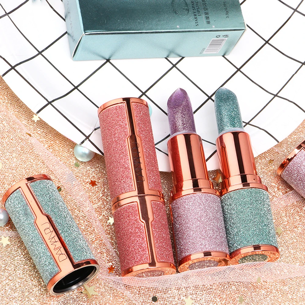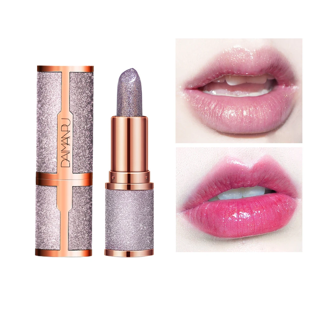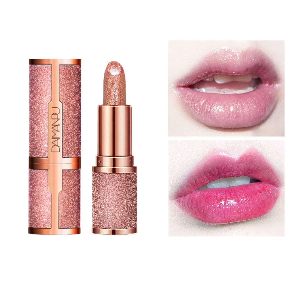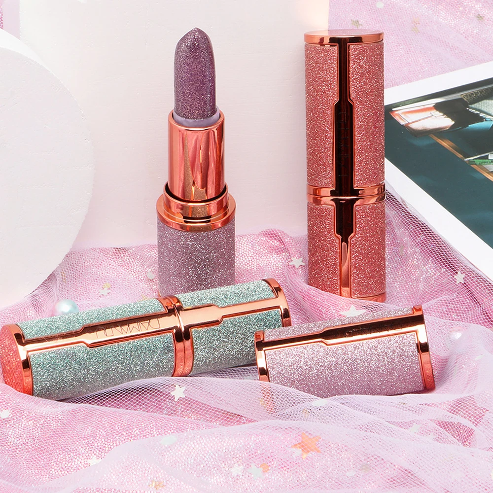 Batom com glitter em 3 cores, brilho labial que muda de temperatura, à prova d'água, longa duração