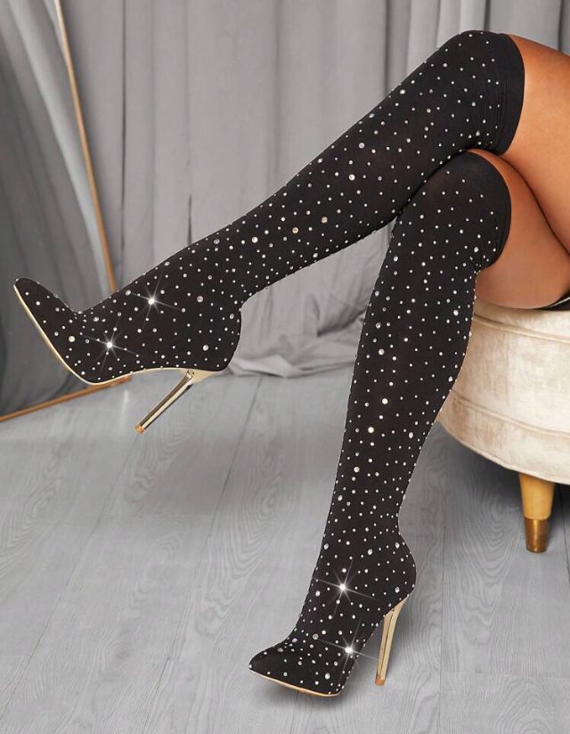 Botas Stiletto com Strass: Poder, Elegância e Brilho em Cada Passo