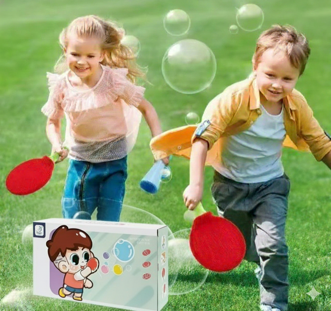 Transforme a brincadeira de bolhas de sabão em um verdadeiro esporte! Com o nosso Kit Ping-Pong de Bolhas, as crianças podem rebater as bolhas no ar sem que elas estourem imediatamente, graças à tecnologia exclusiva das nossas raquetes.