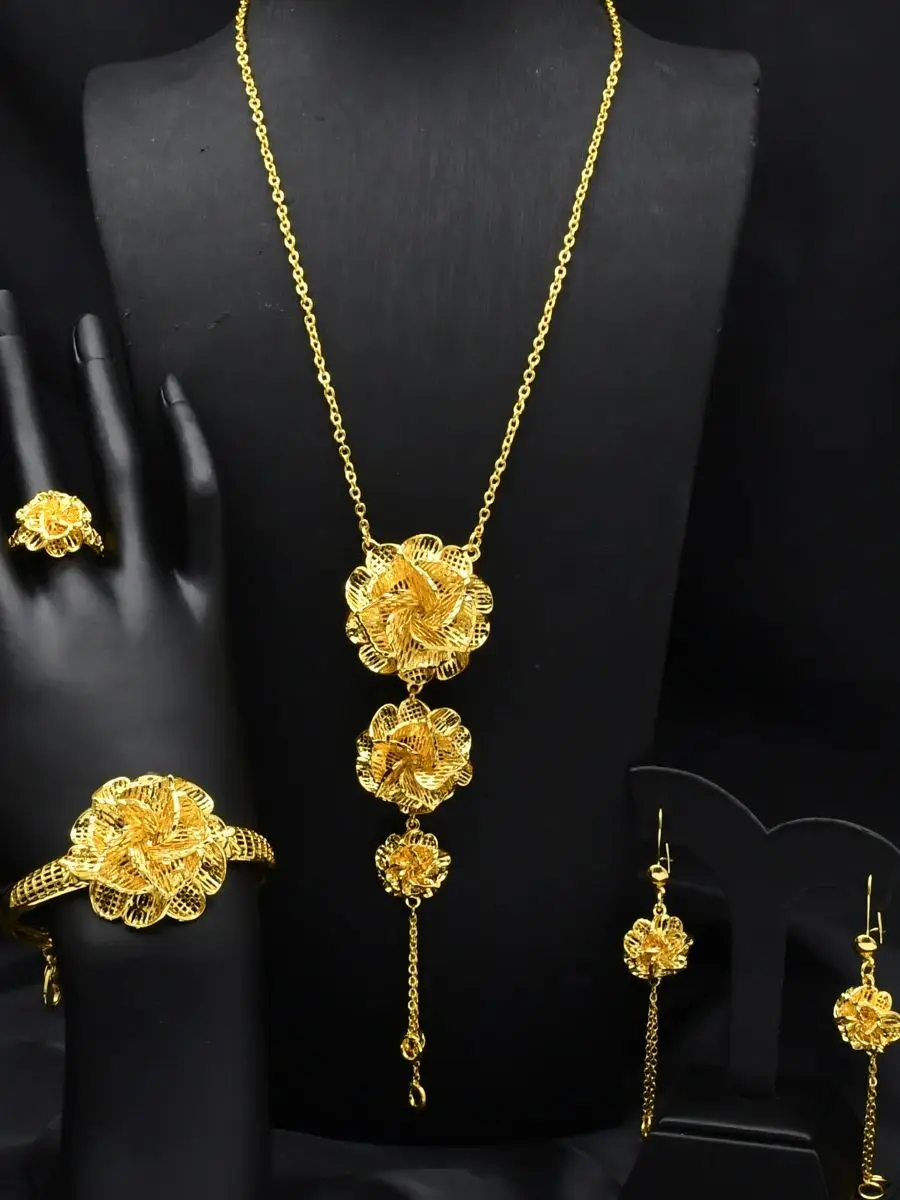 conjunto de jóias cor de ouro para mulheres banhado a ouro jóias dubai.
