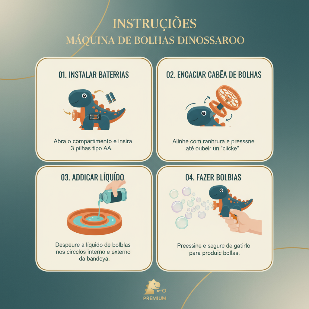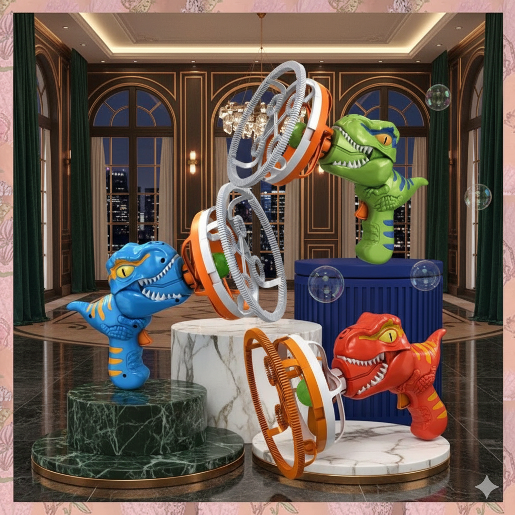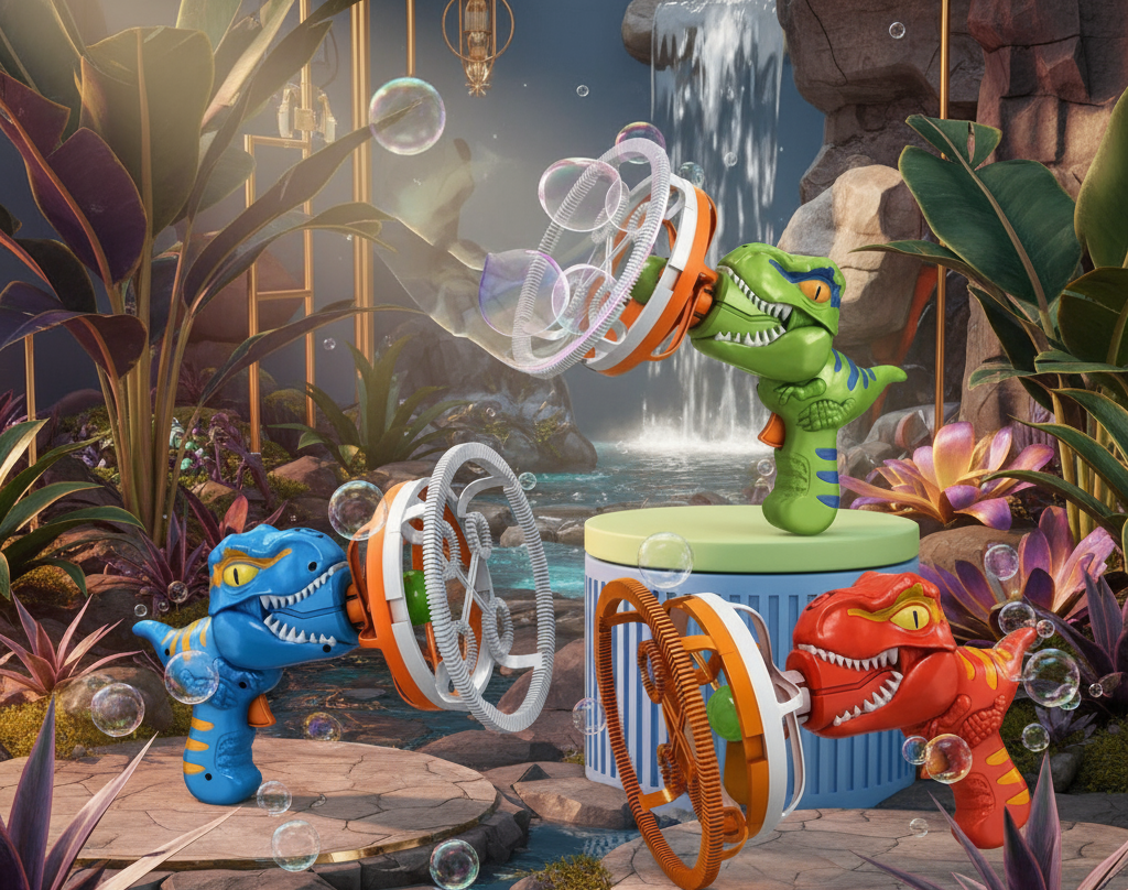 • Multifuncionalidade inteligente: Além de fazer bolhas, o Dino Splash Akilario pode ser usado como brinquedo temático ou como ventilador portátil nos dias quentes. Ideal para piscina, praia ou quintal.