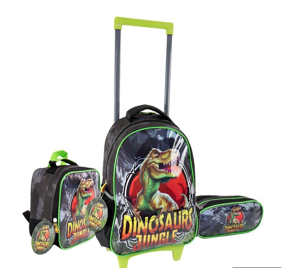 KIT Mochila de Rodas Infantil Dinossauro 3 Peças