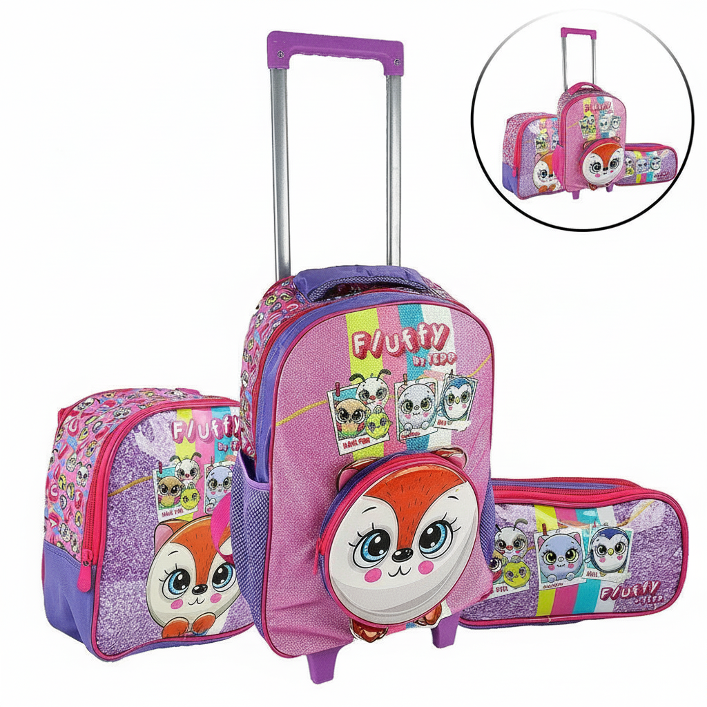 KIT Mochila de Rodas Infantil Raposa 3 Pçs