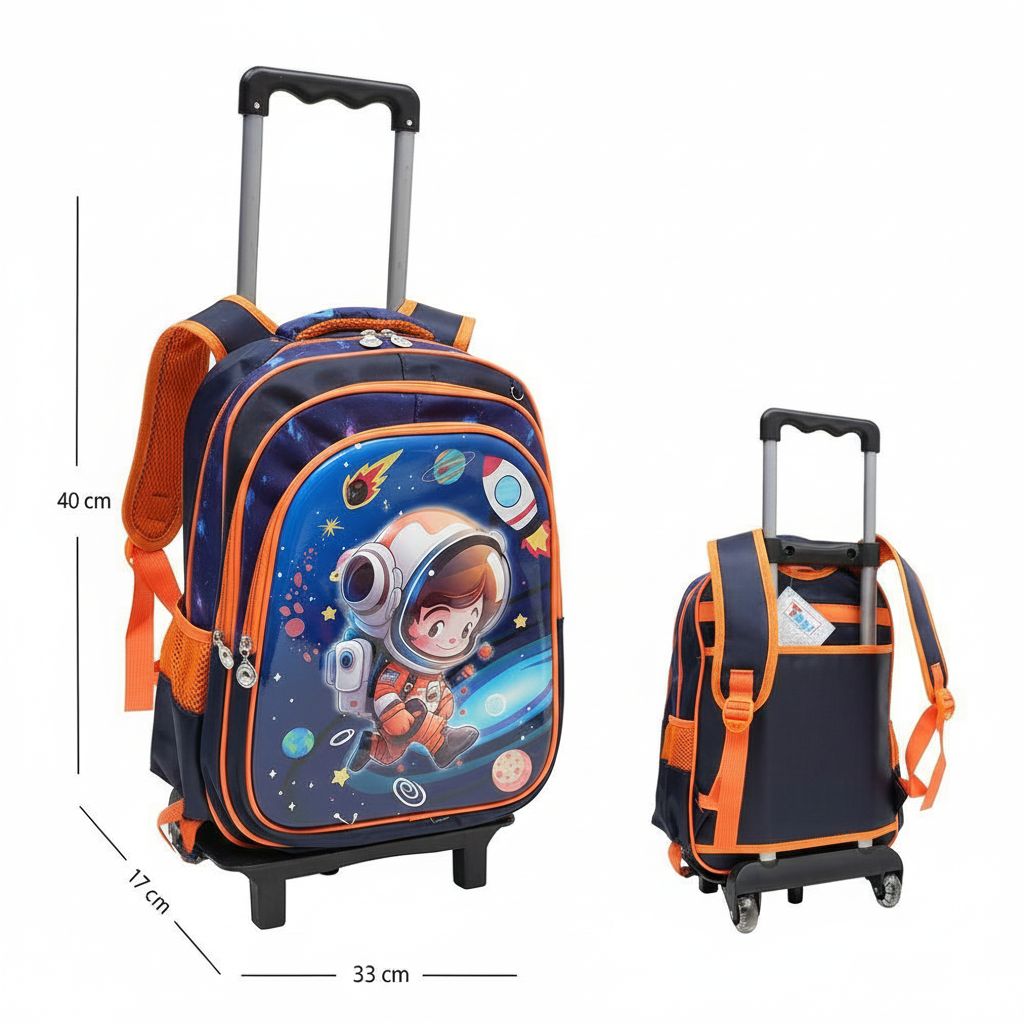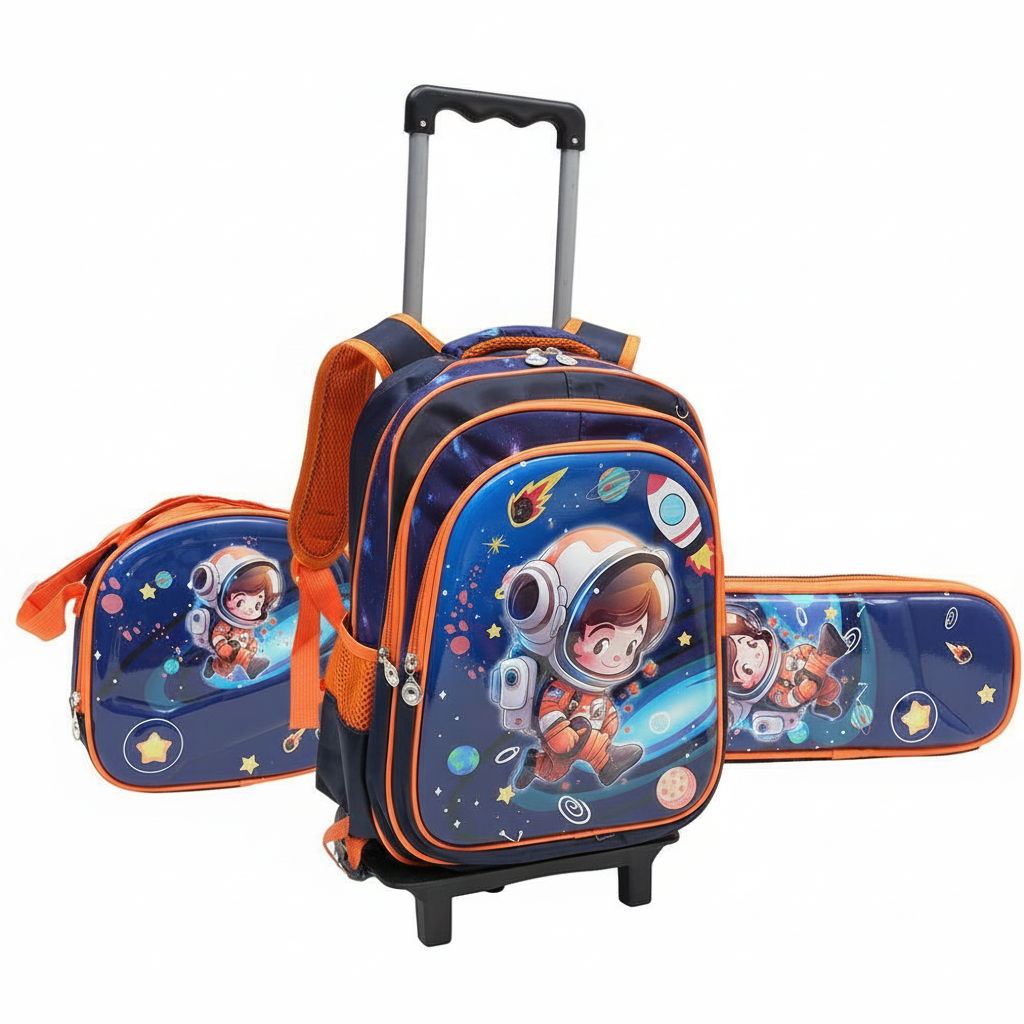 KIT Mochila de Rodas Infantil Removível Astronauta 3D