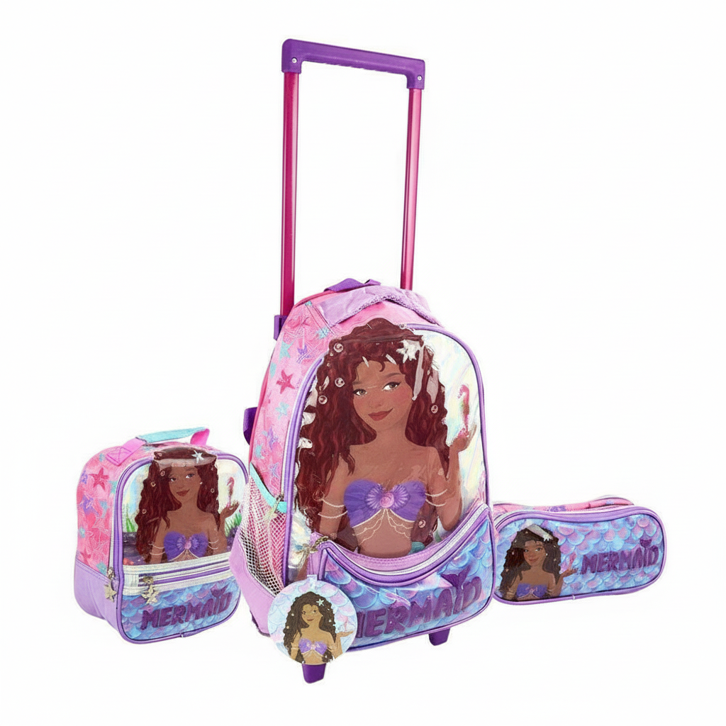 KIT Mochila de Rodas Infantil Sereia 3 Peças