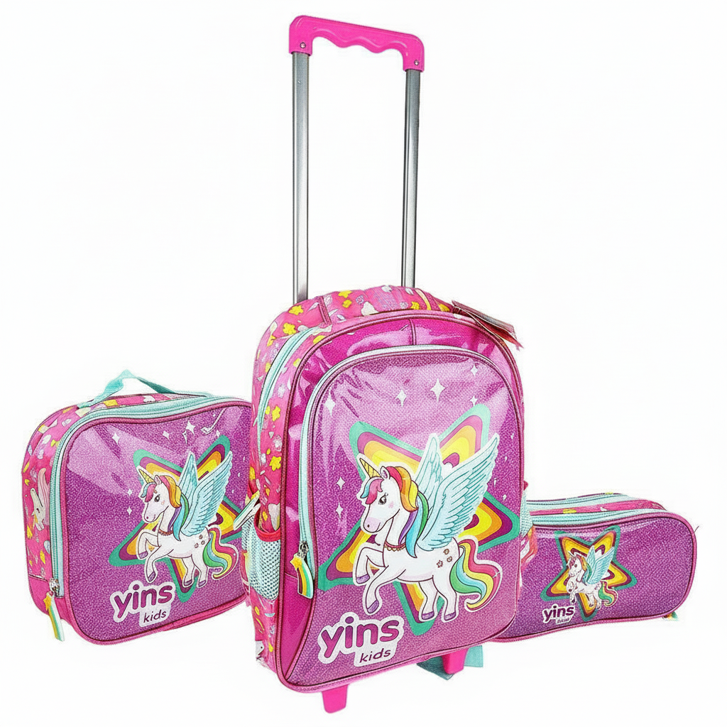 KIT Mochila de Rodas Infantil Unicórnio 3 Pçs