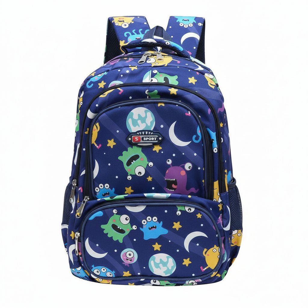 tema "espaço" de forma empolgante. Seu tamanho de 43cm oferece amplo espaço para carregar livros, cadernos e outros materiais escolares com facilidade. As alças ajustáveis e acolchoadas garantem conforto durante o uso diário. Perfeita para a escola ou passeios, a Mochila Juvenil Monstros Espaço Azul oferece praticidade, estilo e muita diversão para os jovens aventureiros. Sua estrutura inclui 4 compartimentos com zíper e 2 bolsos laterais para garrafas, proporcionando amplo espaço e organização. Ideal para o dia a dia, essa mochila combina funcionalidade, conforto e um visual cheio de cor e personalidade.