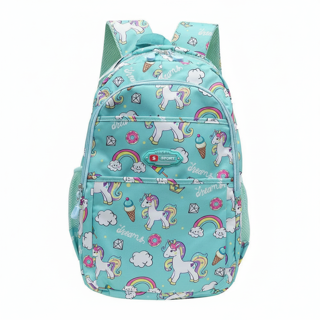 unicórnio, ela traz cores suaves e detalhes brilhantes que encantam. Seu tamanho de 44 cm oferece bastante espaço para armazenar livros, cadernos e outros itens essenciais. As alças ajustáveis garantem conforto durante o uso, e o material resistente proporciona durabilidade. Ideal para a escola ou passeios, essa mochila combina praticidade e um visual único que vai encantar qualquer jovem. Sua estrutura inclui 4 compartimentos com zíper e 2 bolsos laterais para garrafas, proporcionando amplo espaço e organização. Ideal para o dia a dia, essa mochila combina funcionalidade, conforto e um visual cheio de cor e personalidade.