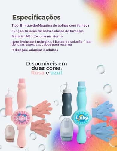 O líquido de bolhas é especial? Posso usar outro? O líquido que acompanha o kit é formulado para um melhor efeito de fumaça. No entanto, a varinha funciona perfeitamente com qualquer líquido de bolhas tradicional.