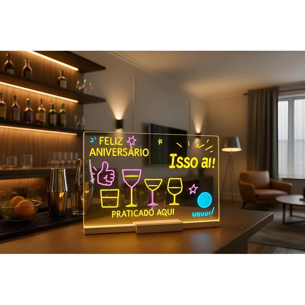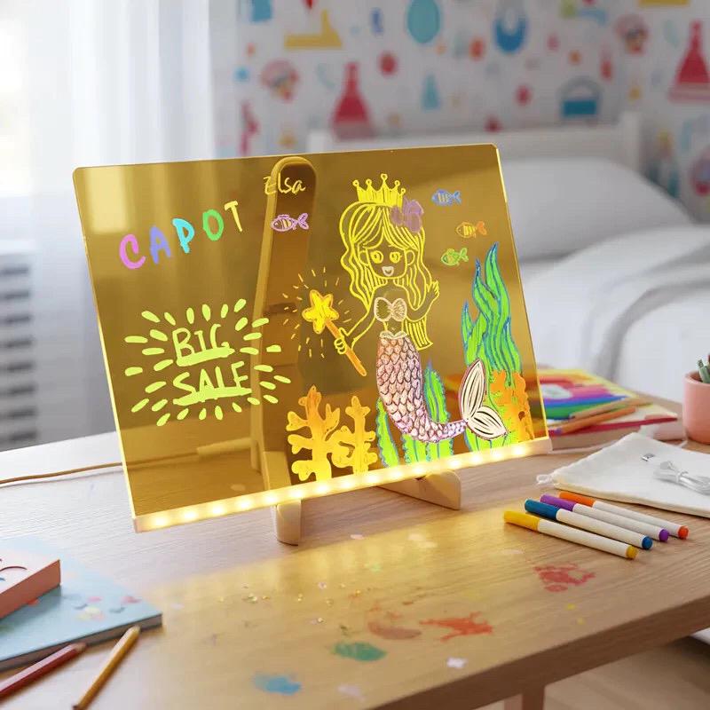 Quadro de Mensagens com Iluminação LED Este quadro de mensagens com iluminação LED estimula o interesse e a atenção das crianças, sendo perfeito para rabiscar, fazer planos ou deixar mensagens carinhosas. Também inspira a criatividade e pode ser usado para escrever mensagens ou desenhar.